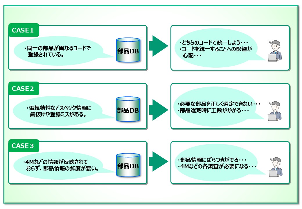 誤情報や古い情報による部品選定の手戻りを防止するため、 定期的な電子部品データのデータクレンジングを推奨いたします。